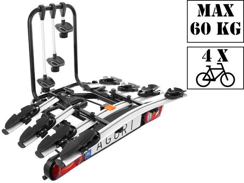 Po zakupie specjalnego adaptera na bagażniku rowerowym Aguri Active można przewozić 4 rowery. Bagażnik Aguri posiada wiązkę 13 PIN, co sprawia, że jest wyposażony we wszystkie światła wymagane przez aktualne prawo.