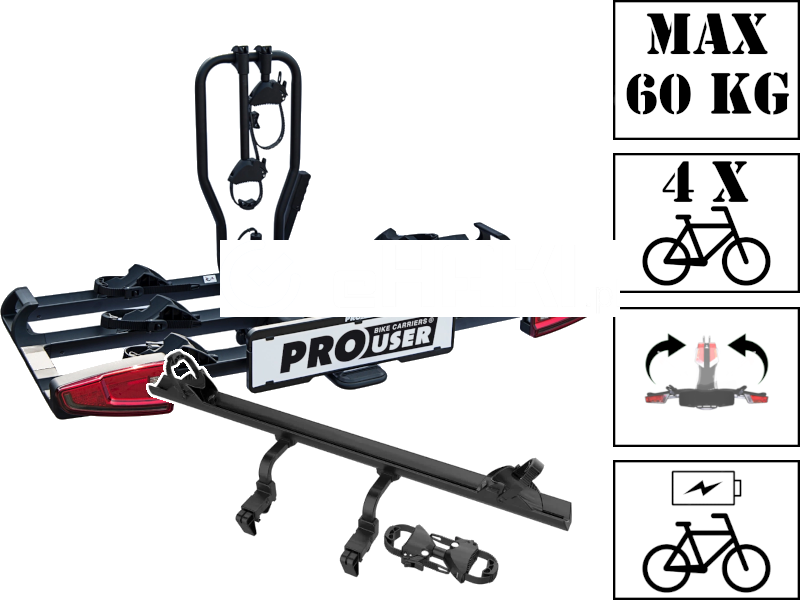 Bagażnik PROUSER Diamant FG3 LED Black to wysokiej klasy platforma rowerowa montowana na hak holowniczy, zaprojektowana z myślą o wygodzie, bezpieczeństwie i funkcjonalności. Jest to limitowana edycja popularnego modelu Diamant FG3, wyróżniająca się eleganckim, czarnym wykończeniem.